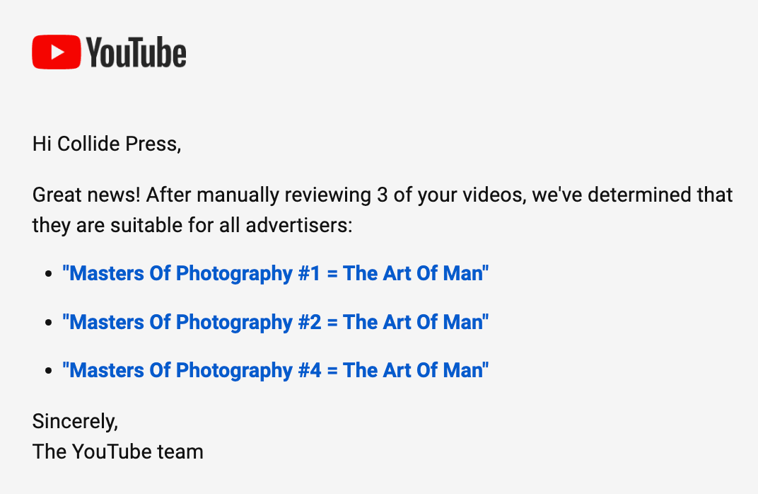 With YouTube Partner Program, it’s important to remember: You’re in a YouTube program, not an actual YouTube partner.