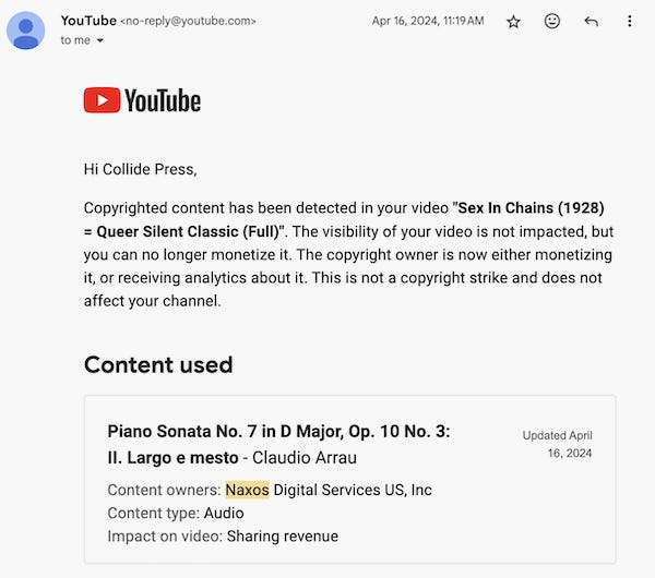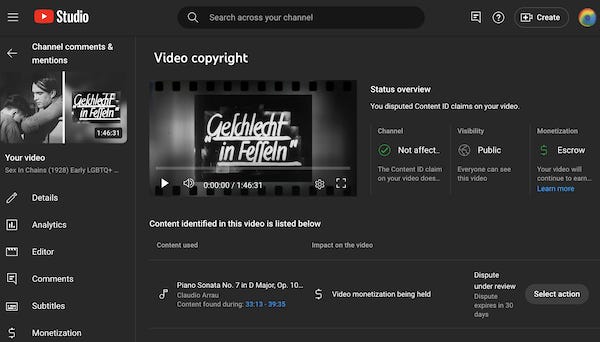 Over the past three months, I’ve received at least a dozen copyright claims from this “library” alone. All for music composed before 1920. They may own copyrights on newer recordings of those compositions…but they don’t own copyrights on the original composition. No one does. That’s what public domain means, dumbasses.